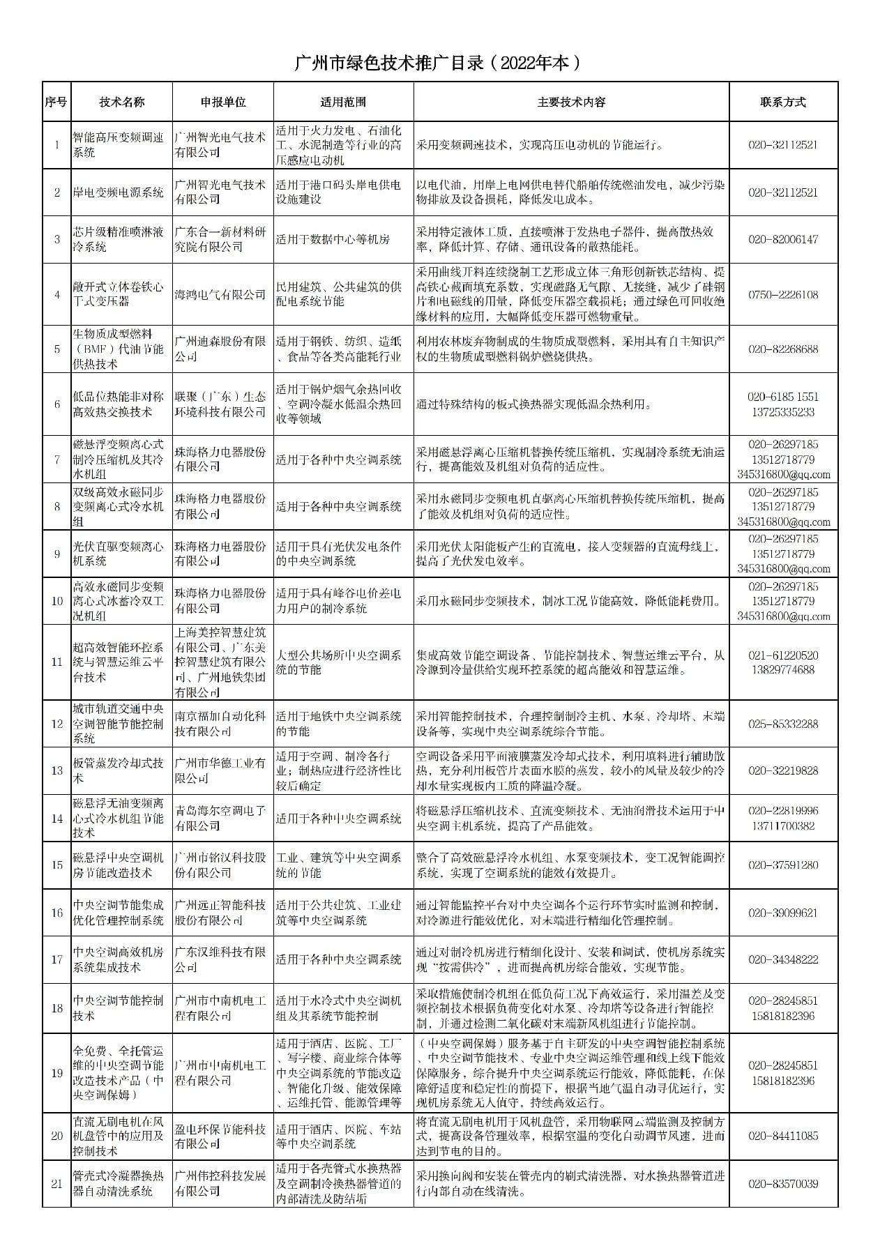 附件:《廣州市綠色技術推廣目錄(2022年本)》(公示)