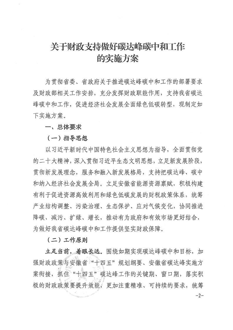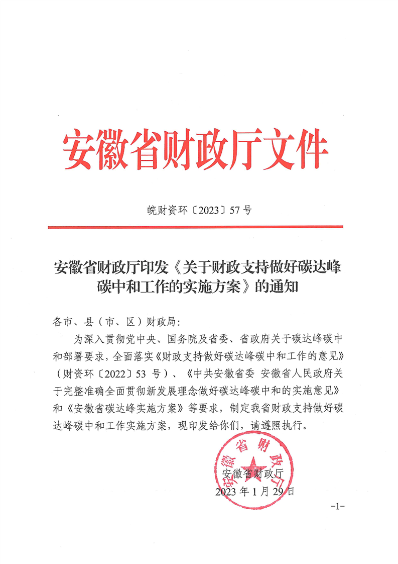 1月29日,安徽省財政廳印發(fā)《關(guān)于財政支持做好碳達(dá)峰碳中和工作的實施方案》的通知。