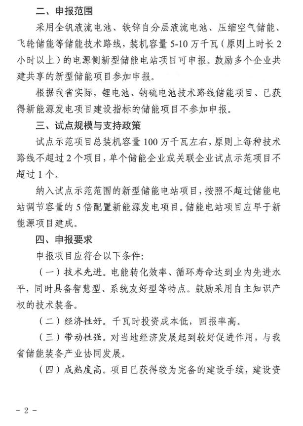 2月3日,湖北省能源局發(fā)布了《省能源局關(guān)于開展新型儲能電站試點示范工作的通知》?!锻ㄖ繁硎?,本次試點釋放項目總裝機(jī)規(guī)模約1GW左右。原則上每種技術(shù)路線不超過2個項目;納入試點示范范圍的新型儲能電站項目,按照不超過儲能電池調(diào)節(jié)容量的5倍配置新能源發(fā)電項目。儲能電站項目應(yīng)早于新能源項目建成。申報截止時間3月31日。