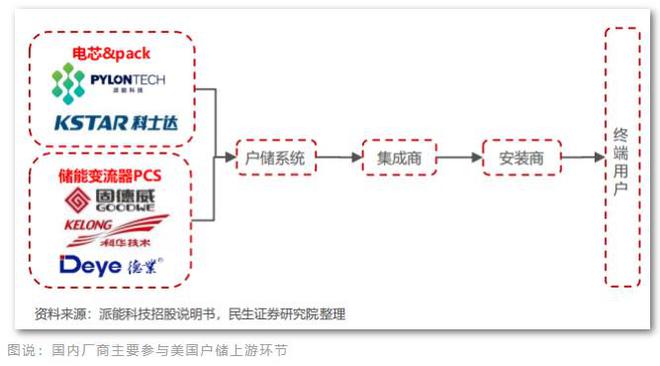 從表后和工商業(yè)儲(chǔ)能來看,國內(nèi)企業(yè)大部分以代工和海外品牌合作的模式進(jìn)入海外市場(chǎng),也是參與產(chǎn)業(yè)鏈上游的關(guān)鍵環(huán)節(jié)——電芯、PACK和逆變器。