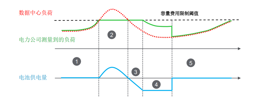 施耐德在發(fā)表的一篇白皮書中提到儲能型UPS 能以非常規(guī)則的方式調(diào)節(jié)電網(wǎng)所測量到的負(fù)荷。如此可以將數(shù)據(jù)中心峰值電力容量需求最小化,使用UPS之前儲存好的電量,避免在用電高峰期支付高價(jià)電費(fèi),降低容量費(fèi)用。