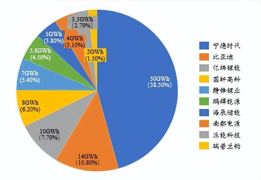 儲能電池出貨量高增,龍頭企業(yè)份額穩(wěn)固,國內(nèi)企業(yè)快速崛起。根據(jù)數(shù)據(jù)統(tǒng)計,2022年中國儲能鋰電池出貨量達到130GWh,同比增速達170%;排名前兩位企業(yè)市占率CR2為49.3%,前五企業(yè)市場占有率合計68.6%,市場份額競爭較為激烈。2022年,寧德時代儲能鋰電池出貨量為50GWh,市場占有率為38.5%,排名行業(yè)第一、遙遙領先其他對手。比亞迪儲能全球訂單總量超14GWh,排名第二。競爭格局方面,國內(nèi)鋰電企業(yè)在動力電池技術和產(chǎn)業(yè)鏈方面全球領先,在新興的儲能鋰電池市場也迅速占據(jù)了出眾的市場份額。寧德時代為儲能電池絕對龍頭,市占率全球領先;比亞迪、鵬輝、億緯、國軒等占據(jù)第二梯隊,儲能電池貢獻業(yè)績占比逐步提升。國內(nèi)企業(yè)在儲能電池環(huán)節(jié)競爭力強,有望受益于國內(nèi)和全球大儲市場加速發(fā)展,贏得動力電池之外的第二成長曲線;隨著國內(nèi)獨立儲能模式的逐步推廣,具備技術優(yōu)勢、產(chǎn)品性能優(yōu)良的電池企業(yè)有望獲得長足競爭力。