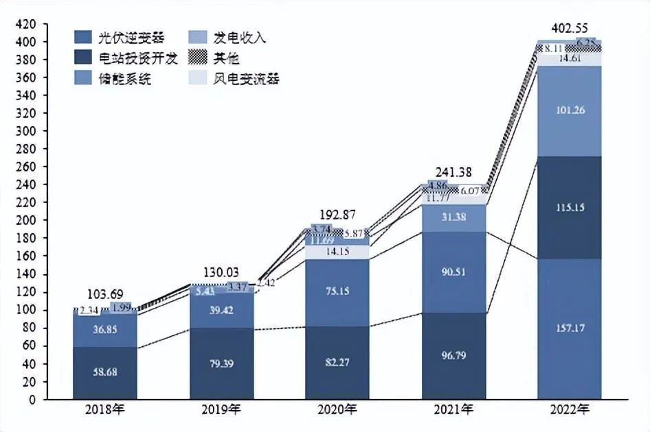 圖表 18:2018-2022年陽光電源營收結構 單位:億元