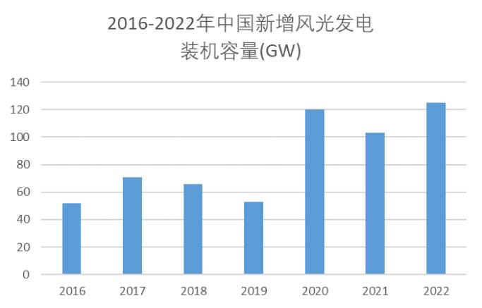 中國(guó)新增風(fēng)光發(fā)電裝機(jī)容量圖