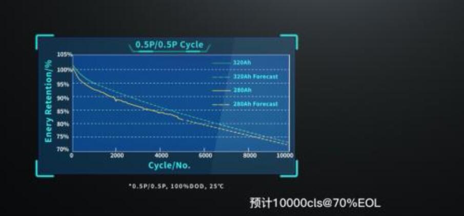 據(jù)官網(wǎng)介紹,這款300Ah電力儲(chǔ)能專(zhuān)用電池在與280Ah電池尺寸規(guī)格不變的情況下,可實(shí)現(xiàn)前三年“零”衰減(前1000次循環(huán),容量/能量衰減率≤2%),循環(huán)壽命可達(dá)12000次(可滿(mǎn)足15-20年應(yīng)用場(chǎng)景需求)。