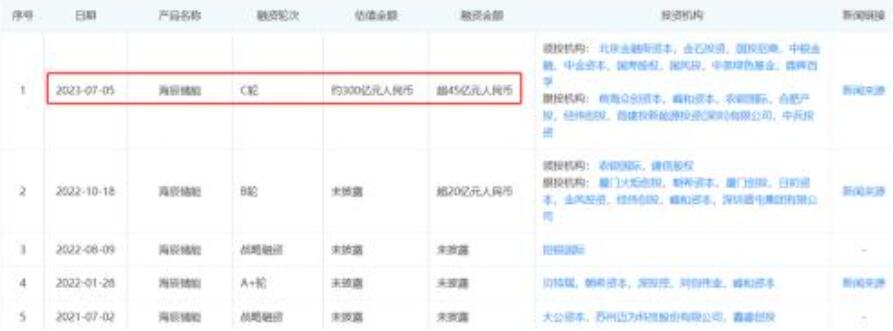 (海辰儲(chǔ)能歷次融資情況,圖片來(lái)源:企查查)