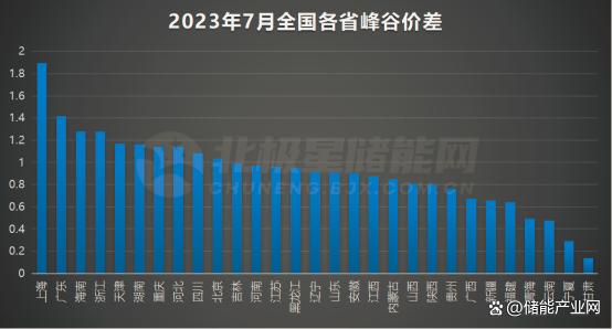 2023年7月全國各省日峰谷價(jià)差如下圖所示:
