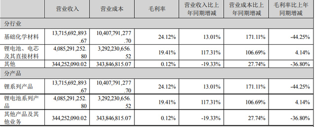 今年上半年,贛鋒鋰業(yè)的鋰電池系列產(chǎn)品營業(yè)收入達(dá)到40.85億元,同比增長117.31%,占比首度突破20%達(dá)到22.5%,毛利率更是增長了4.14個百分點(diǎn)到19.41%,成為贛鋒鋰業(yè)唯一實(shí)現(xiàn)毛利率正增長的業(yè)務(wù)。