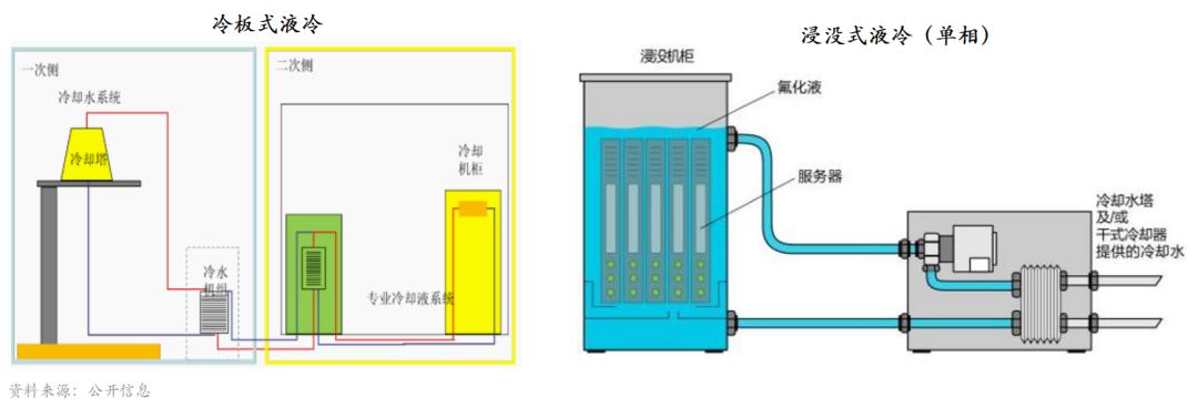 根據(jù)冷卻液和服務器接觸換熱方式的不同,分為直接液冷和間接液冷,其中間接液冷以冷板式液冷技術為主,直接液冷以浸沒式液冷技術為主。