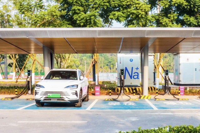 在自貢高投集團(tuán)公司辦公區(qū)停車場,印有藍(lán)色“Na+(鈉離子)”標(biāo)志的興儲(chǔ)世紀(jì)50kW/105kWh工商業(yè)儲(chǔ)能柜醒目亮眼,正源源不斷地為場內(nèi)的新能源汽車輸入電能。