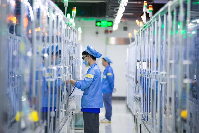 億緯鋰能方形鐵鋰電池模組自動(dòng)化生產(chǎn)車間。