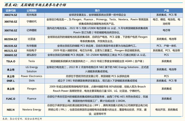 美國(guó)儲(chǔ)能市場(chǎng)主要參與者