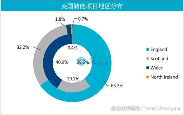 從地域分布看,威爾士、英格蘭當前儲能裝機量最高,均超過2GW,分別占41%及40%。其中威爾士的儲能以抽水蓄能為主,容量占比超過98%,而英格蘭的在運項目均為新型儲能。在英格蘭的九個行政大區(qū)中,儲能項目部署相對集中在英格蘭東南地區(qū)。