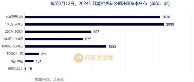 不只是近期密集設(shè)立儲(chǔ)能新公司,行家說儲(chǔ)能根據(jù)企查查相關(guān)數(shù)據(jù)統(tǒng)計(jì),2024年1月1日-2月12日新注冊(cè)的儲(chǔ)能相關(guān)企業(yè)7570家,去年同期為3720家,同比增加103.49%。其中,單是1月就有6370家,日均新增205家。