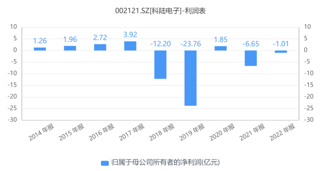 探究科陸電子的發(fā)展歷程,自1996年成立以來,在2018年前一直呈現(xiàn)上升趨勢。從2007年上市初期不足4億元的營業(yè)收入,到2017年躍升至近44億元,凈利潤也從0.68億元攀升至4.59億元,然而,在2018年和2019年,因擔(dān)保暴雷、資產(chǎn)減值等事項(xiàng),合計(jì)虧損高達(dá)約36億元,致使過去數(shù)十年的盈利化為烏有,甚至一度瀕臨退市的風(fēng)險(xiǎn)。