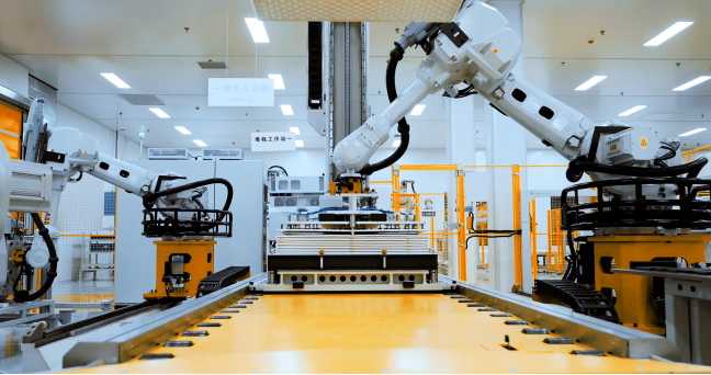 規(guī)范化和智能化生產(chǎn)是發(fā)展儲能的必由之路,也是支撐儲能產(chǎn)品迭代、推廣、持續(xù)降本、持續(xù)降碳、擴大應(yīng)用規(guī)模的關(guān)鍵條件。在 “超G工廠”中,配備了由緯景儲能自主研發(fā)的業(yè)內(nèi)自動化率最高的液流電池智能產(chǎn)線與系統(tǒng)集成線,通過激光定位、昆蟲仿生等制造工藝,集標(biāo)準(zhǔn)化、自動化、數(shù)智化于一體,開創(chuàng)性地實現(xiàn)液流電池生產(chǎn)的全過程數(shù)智化。工廠配有超過300個機器人承擔(dān)精密且繁重的作業(yè),機器人能夠單臂抓舉200公斤重物,且質(zhì)子交換膜精準(zhǔn)度可到達(dá)到±0.1毫米,每條產(chǎn)線僅需20分鐘即可完成一個成品電池的組裝,生產(chǎn)效率與精準(zhǔn)度均提升了數(shù)十倍,大幅度提高了公司交付產(chǎn)品的良率,提供了質(zhì)量保證。