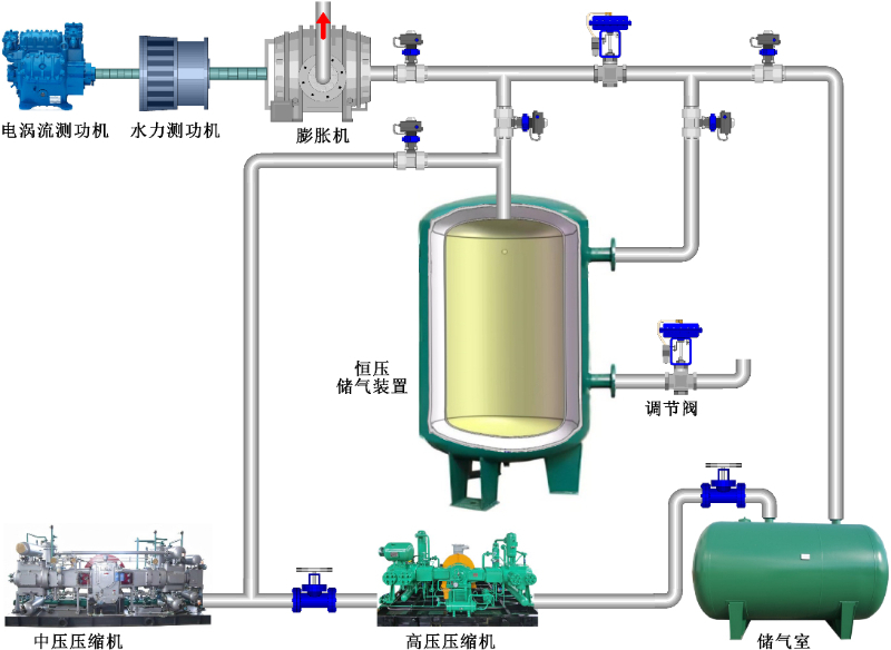 恒壓壓縮空氣儲能試驗(yàn)平臺示意圖 (圖片來源:中國科學(xué)院工程熱物理研究所)