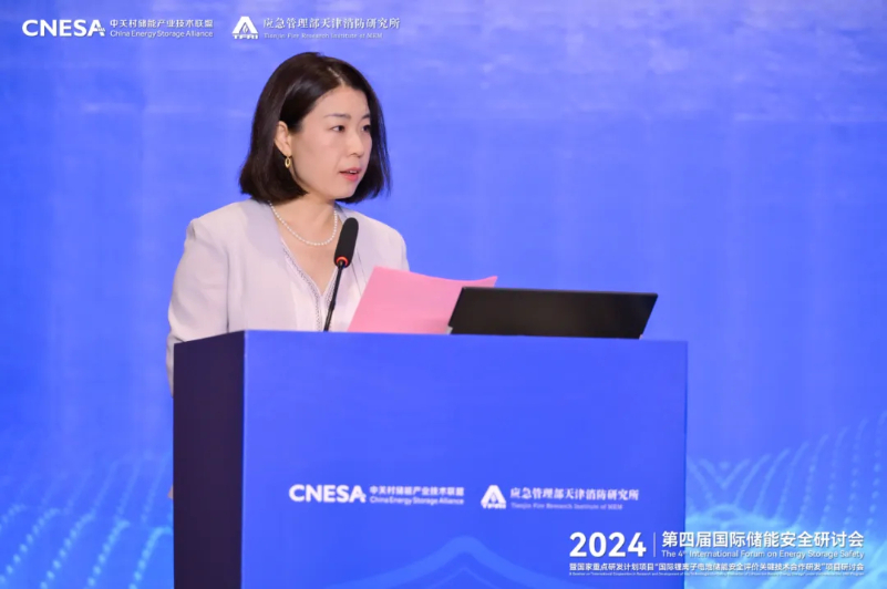 世界銀行能源顧問Aakarshan Vaid介紹了美國(guó)、英國(guó)、澳大利亞等發(fā)生的儲(chǔ)能火災(zāi)典型事故、儲(chǔ)能不同階段的現(xiàn)狀等。應(yīng)急管理部天津消防研究所科技處處長(zhǎng)李晉重點(diǎn)介紹了鋰離子電池儲(chǔ)能安全評(píng)價(jià)技術(shù)研究進(jìn)展。