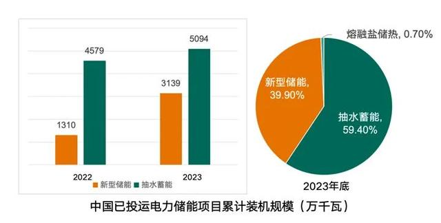 近兩年我國新型儲(chǔ)能(指除抽水蓄能以外,以輸出電力為主要形式的儲(chǔ)能技術(shù))發(fā)展迅速,新型儲(chǔ)能在我國電力儲(chǔ)能累計(jì)裝機(jī)中的占比由2022年的16%激增至2023年的40%。