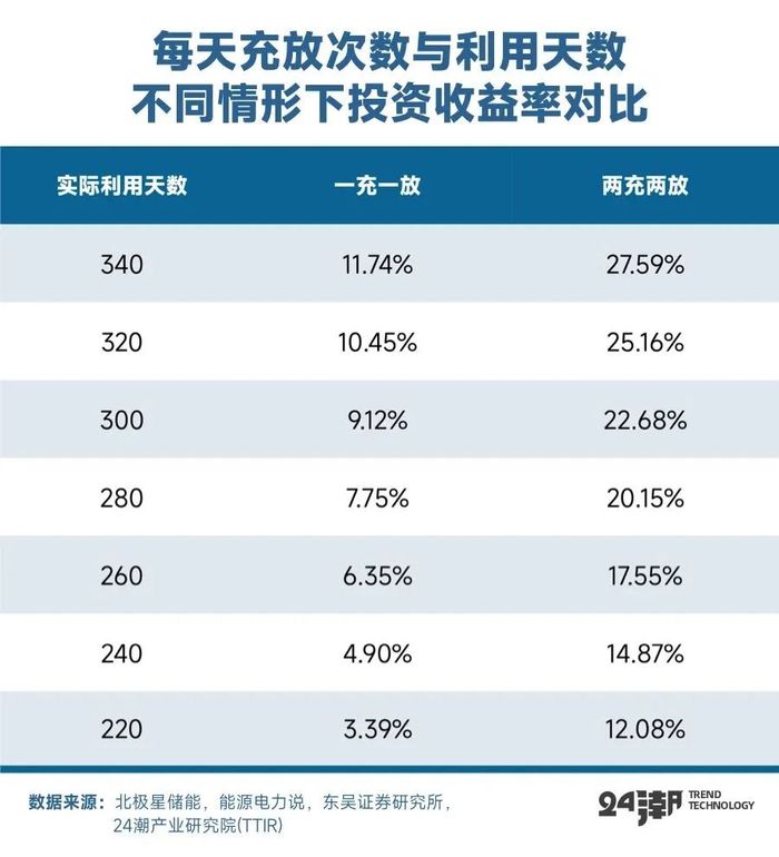 還需要注意的是,據(jù)東吳證券測算,工商儲實際應(yīng)用中收益率低于理論值,對工商業(yè)業(yè)主吸引力有限。工商儲單個項目功率較大,初始投資成本約上千萬元,此外分時電價政策變化的不確定性、若實際利用天數(shù)較低,收益率將打較大折扣,每天同一充放次數(shù)下,220天利用天數(shù)與340天利用天數(shù)可產(chǎn)生近2倍收益率差異。考慮目前實際利用是一充一放為主,280利用天數(shù)下IRR為7.75%。