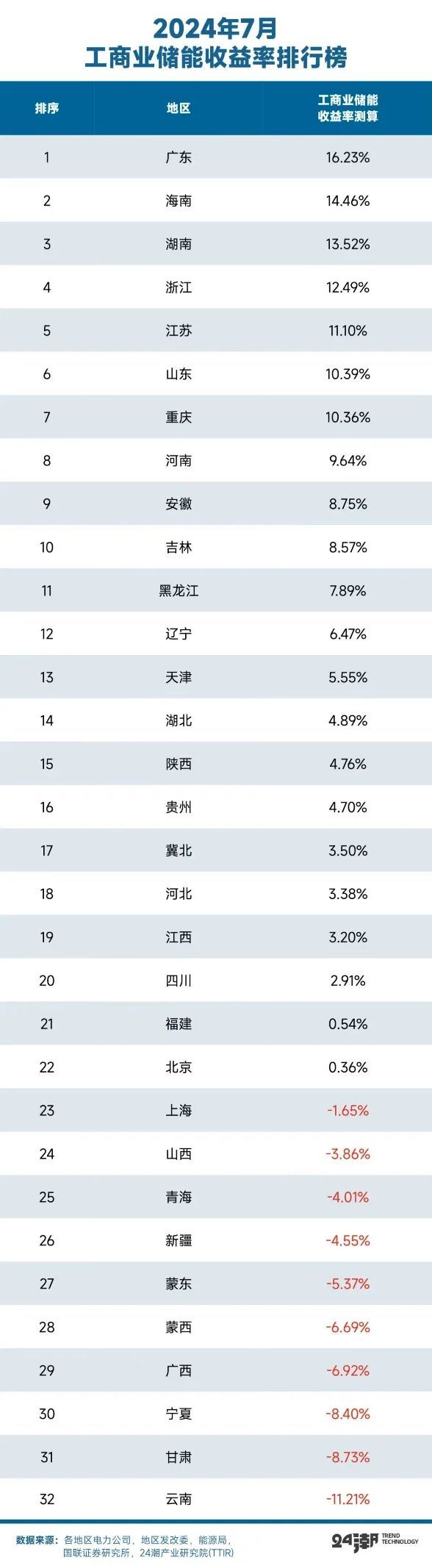 另外據(jù)國聯(lián)證券測算,目前國內(nèi)云南、甘肅、寧夏等十個地區(qū)的工商業(yè)儲能收益率為負(fù)數(shù),形勢不容樂觀。