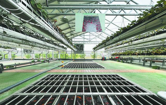比如長豐縣陶樓鎮(zhèn)的“光伏+智慧農業(yè)”科技示范基地內,有不少科技大棚,采用了棚頂光伏發(fā)電、中間種植草莓生菜、下面水產養(yǎng)殖的光伏漁菜養(yǎng)殖模式。光伏板設于大棚頂部,源源不斷提供電能,底部安裝了集中箱進行養(yǎng)魚,上方則種植著一排排盆栽草莓和辣椒,一幅現(xiàn)代智慧農業(yè)風景圖生機勃勃。