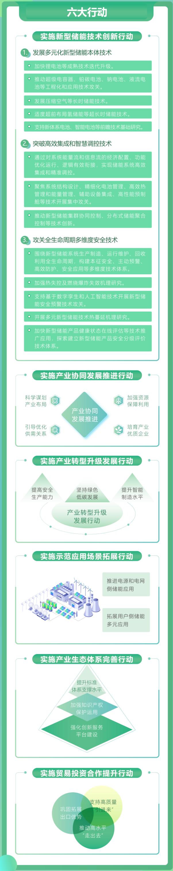 記者注意到,《方案》共提出實施新型儲能技術(shù)創(chuàng)新行動、實施產(chǎn)業(yè)協(xié)同發(fā)展推進(jìn)行動、實施產(chǎn)業(yè)轉(zhuǎn)型升級發(fā)展行動、實施示范應(yīng)用場景拓展行動、實施產(chǎn)業(yè)生態(tài)體系完善行動、實施貿(mào)易投資合作提升行動等六大行動。