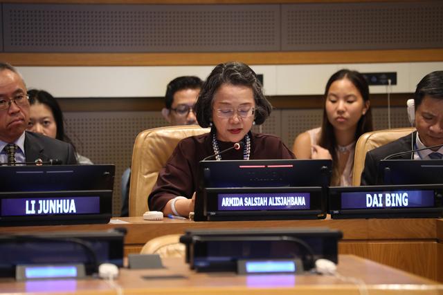 當(dāng)?shù)貢r(shí)間7月13日,聯(lián)合國(guó)可持續(xù)發(fā)展高級(jí)別政治論壇能源主題邊會(huì)在紐約聯(lián)合國(guó)總部舉行,聯(lián)合國(guó)副秘書(shū)長(zhǎng)兼聯(lián)合國(guó)亞洲及太平洋經(jīng)濟(jì)社會(huì)委員會(huì)執(zhí)行秘書(shū)阿米達(dá)·阿利斯夏巴納在會(huì)上講話(huà)。(合作組織供圖)