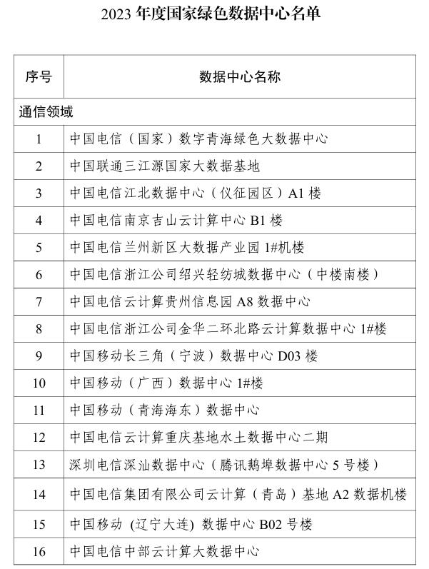 2023年度國家綠色數(shù)據(jù)中心名單公布