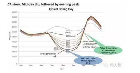 隨著越來越多的風(fēng)電接入電網(wǎng),電力系統(tǒng)的頻率穩(wěn)定問題日益突出。中國(guó)風(fēng)電裝機(jī)和并網(wǎng)正在經(jīng)歷一個(gè)爆發(fā)式增長(zhǎng),在此種局面下,未來極有可能會(huì)出現(xiàn)現(xiàn)在正在美國(guó)加州的電網(wǎng)發(fā)生的可再生能源消納難題。因分散型光伏發(fā)電系統(tǒng)的大量導(dǎo)入,出現(xiàn)了白天發(fā)電量超過用電量,但在傍晚太陽能發(fā)電停止時(shí),電力需求卻急劇上升的現(xiàn)象。不久的將來填補(bǔ)這種巨大的供需缺口會(huì)變得困難。