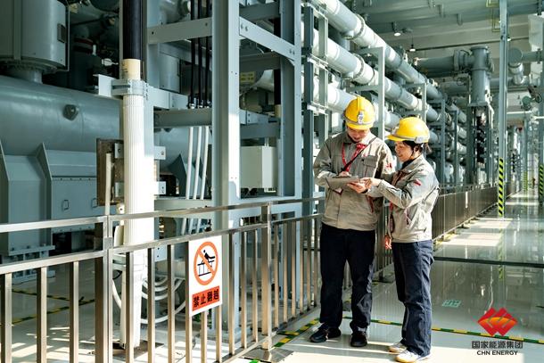 圖為職工佩戴智能安全帽在5G信號(hào)全覆蓋的500千伏GIS室巡檢