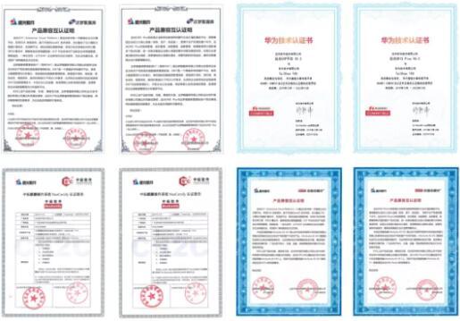 國產(chǎn)服務(wù)器(華為)、國產(chǎn)操作系統(tǒng)(中標(biāo)麒麟)、國產(chǎn)數(shù)據(jù)庫(達(dá)夢)、國產(chǎn)中間件(中創(chuàng))認(rèn)證書