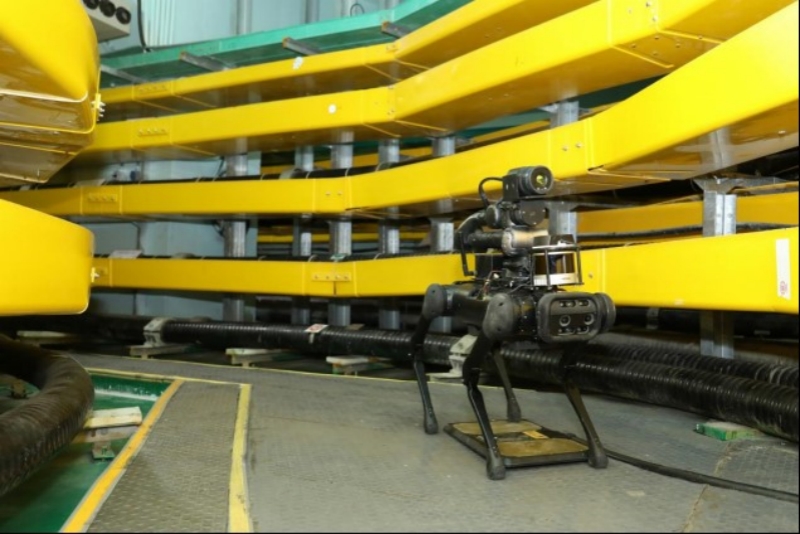在位于南三環(huán)玉泉營(yíng)的電力隧道內(nèi),一臺(tái)搭載感知設(shè)備機(jī)械臂的四足隧道巡檢機(jī)器人正沿著規(guī)劃好的巡檢路徑,對(duì)地下電力隧道環(huán)境及設(shè)備開(kāi)展自主巡檢。