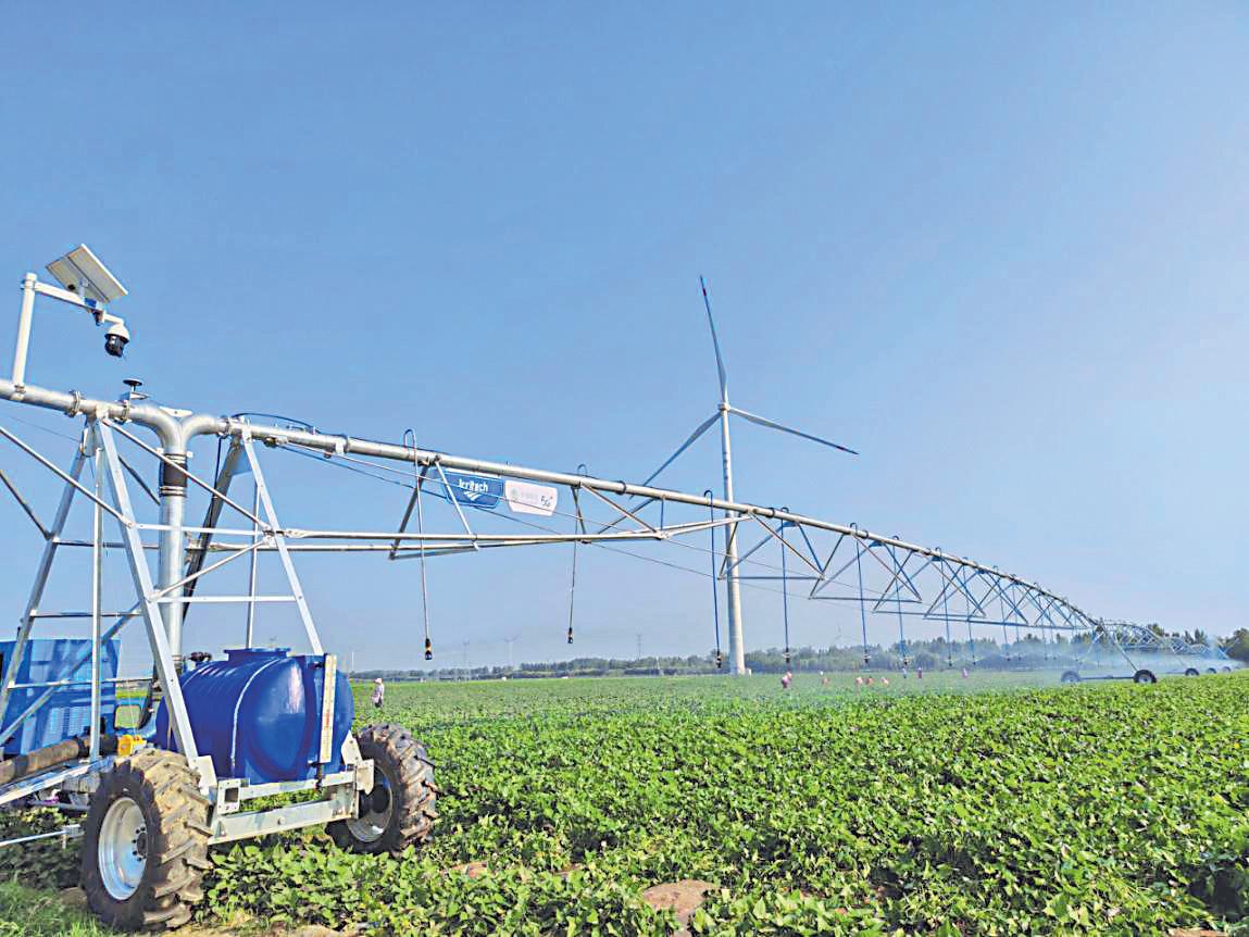 在延津縣,萬(wàn)畝高標(biāo)準(zhǔn)農(nóng)田里的夏玉米已進(jìn)入灌漿期,該階段澆水增肥是增加產(chǎn)量、保障豐產(chǎn)豐收的關(guān)鍵。在塔鋪街道大柳樹(shù)村的高標(biāo)準(zhǔn)農(nóng)田里,幾十米寬的大型平移式噴灌機(jī)似巨鳥(niǎo)展翅,在田間緩緩移動(dòng),“羽翼”下的幾十個(gè)噴頭噴出均勻的“水霧墻”,滋潤(rùn)著莊稼,讓玉米“吃飽喝足”。中國(guó)移動(dòng)5G水肥一體化智能灌溉技術(shù)將灌溉和施肥兩個(gè)農(nóng)業(yè)生產(chǎn)過(guò)程融合在一起,不僅實(shí)現(xiàn)了澆地向澆苗轉(zhuǎn)變,還能將水連同肥料直接輸送到玉米地里,讓玉米“渴”了就“喝”、“餓”了就“吃”,實(shí)現(xiàn)了對(duì)農(nóng)田水分和養(yǎng)分的綜合管理。