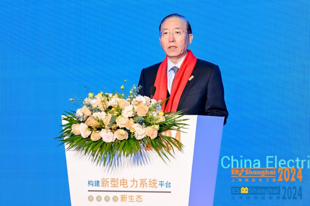中國電力企業(yè)聯(lián)合會(huì)理事長(zhǎng)、全球能源互聯(lián)網(wǎng)發(fā)展合作組織主席辛保安致辭。