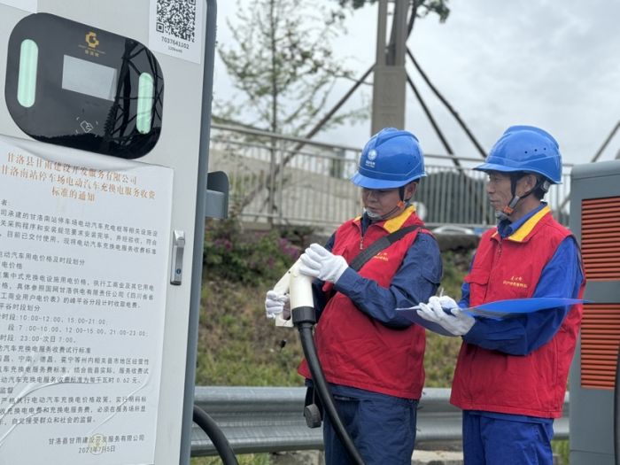 工作人員檢查充電樁