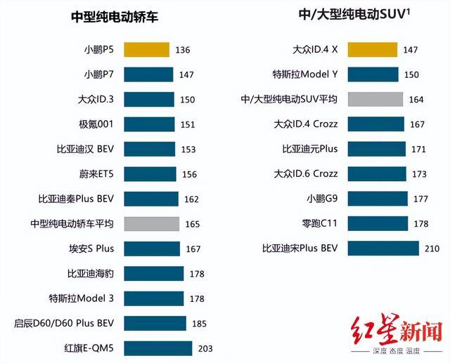 在中/大型純電動(dòng)SUV細(xì)分市場(chǎng),大眾ID.4 X以147個(gè)PP100排名第一,比亞迪宋Plus BEV以210個(gè)PP100排名倒數(shù)第一,細(xì)分市場(chǎng)平均數(shù)為164個(gè)PP100。