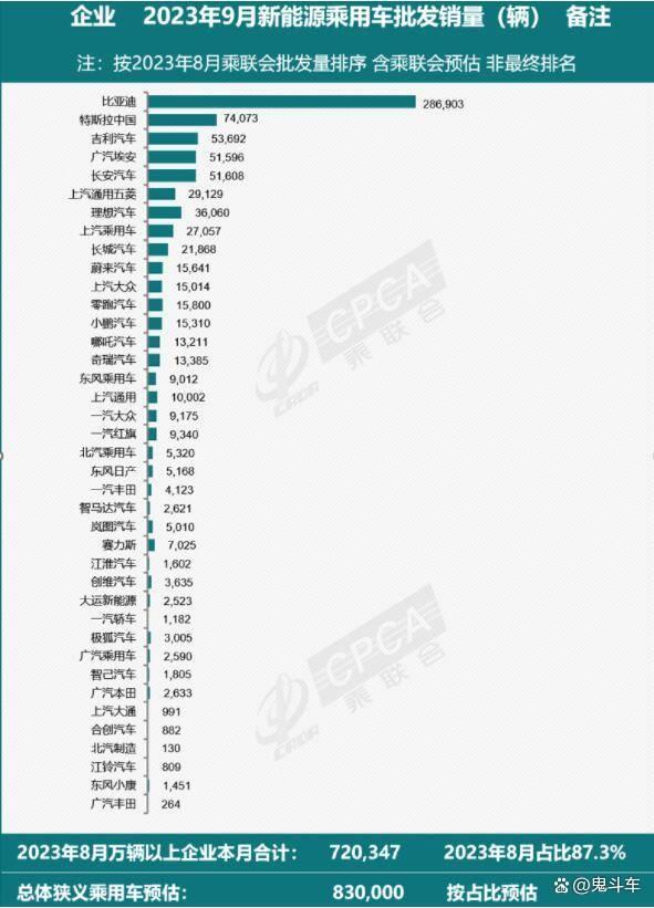 10月8日,“崔東樹”公眾號發(fā)布乘聯(lián)會2023年9月新能源乘用車廠商批發(fā)銷量快訊。從這份數(shù)據(jù)中看到,9月份,新能源市場還是處于增長狀態(tài),但整體增幅并不沒有想象中那么高歌猛進。