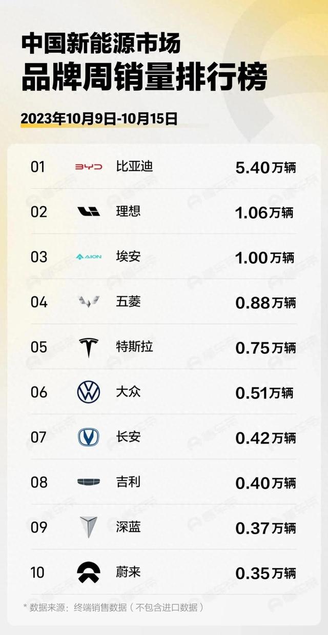 在這短短一周的時(shí)間里,比亞迪仍然保持著令人矚目的銷售業(yè)績(jī),出售了高達(dá)5.4萬(wàn)輛,牢牢占據(jù)首席位置。