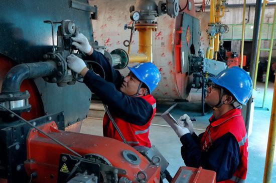 國(guó)網(wǎng)無極縣供電公司工作人員到鑫光熱力有限公司檢查供暖用電設(shè)備。程曉坤攝