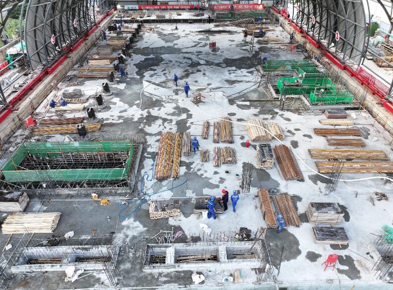 5月22日凌晨3時(shí)50分,伴隨著最后一車混凝土的澆筑,中國能建陜西院設(shè)計(jì)的國內(nèi)首座“330千伏地下變電站”——城南330千伏變電站工程地下主體結(jié)構(gòu)澆筑完成,順利封頂。至此,工程建設(shè)取得了主基坑“地下作業(yè)”的階段性成果,標(biāo)志著工程即將有序進(jìn)入電氣安裝,地上結(jié)構(gòu)部分和小基坑范圍的電纜豎井、主變基礎(chǔ)及事故油池等施工階段。