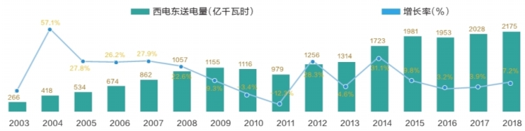 公司成立以來,西電東送電量從266億千瓦時(shí)增長至2175億千瓦時(shí),增長8.18倍,年均增長15%。
