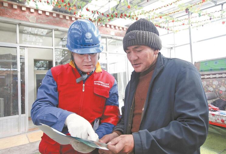 黨員電力網(wǎng)格員為客戶講解冬季安全用電知識。旺瑪多杰 攝