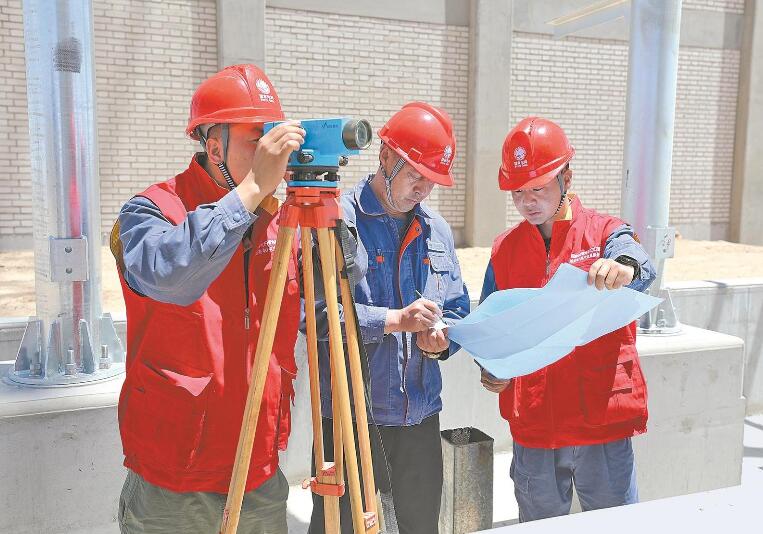 在750千伏烏圖(昆侖山)輸變電工程現(xiàn)場,臨時黨支部黨員和技術(shù)人員開展施工勘測。馬清 攝