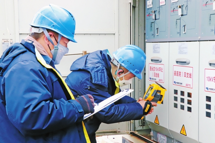 為保障云南省玉溪市華寧縣留觀點、留驗點、醫(yī)學(xué)治療點及滯留旅客安置點等防控疫情第一線的正常用電,云南電網(wǎng)公司玉溪華寧供電局組織人員對涉及線路、設(shè)備進(jìn)行特巡特維,保障可靠供電。圖為該局配電管理所員工對縣醫(yī)院支線的開關(guān)柜進(jìn)行測溫。 向生偉 攝