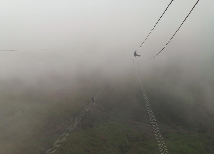 寒潮前夕,南方電網(wǎng)超高壓公司柳州局輸電所檢修人員頂著寒風在架空地線上懸空開展500千伏桂山乙線55#大號側(cè)架空地線復合光纜補強工作,確保在即將到來的雨雪冰凍天氣中覆冰監(jiān)測裝置及整條線路保持安全運行。