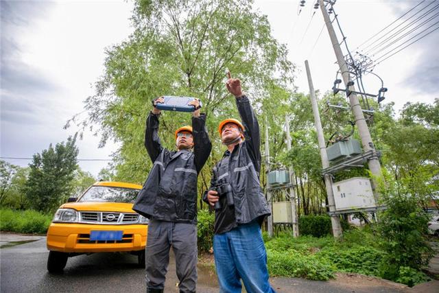 國網(wǎng)吉林送變電公司員工冒雨巡護山區(qū)線路。