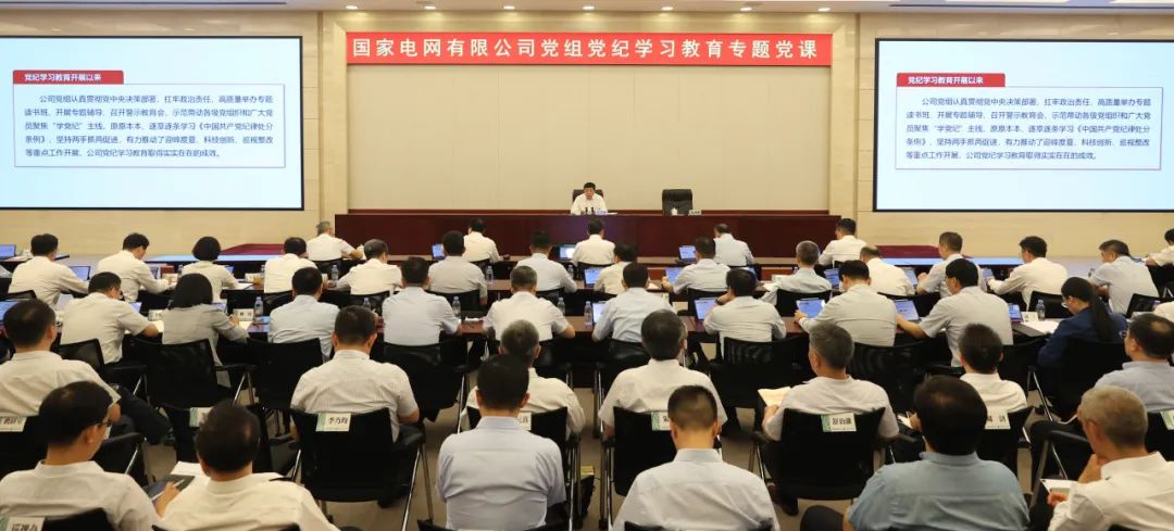 6月28日,國家電網(wǎng)有限公司黨組舉辦黨紀(jì)學(xué)習(xí)教育專題黨課,以習(xí)近平新時(shí)代中國特色社會(huì)主義思想為指導(dǎo),再學(xué)習(xí)再領(lǐng)會(huì)習(xí)近平總書記關(guān)于全面加強(qiáng)黨的紀(jì)律建設(shè)的重要論述,深入開展黨紀(jì)學(xué)習(xí)教育,以紀(jì)律建設(shè)推進(jìn)總部建設(shè),進(jìn)一步增強(qiáng)政治定力、紀(jì)律定力、道德定力、抵腐定力,為推動(dòng)國家電網(wǎng)高質(zhì)量發(fā)展提供堅(jiān)強(qiáng)紀(jì)律保障。公司黨組書記、董事長張智剛講授《全面加強(qiáng)黨的紀(jì)律建設(shè) 帶頭學(xué)紀(jì)知紀(jì)明紀(jì)守紀(jì)》黨紀(jì)學(xué)習(xí)教育專題黨課。公司黨組副書記、總經(jīng)理龐驍剛主持,公司黨組成員、中央紀(jì)委國家監(jiān)委駐公司紀(jì)檢監(jiān)察組組長黃德安,公司黨組成員、副總經(jīng)理潘敬東、金煒、季明彬出席。公司助理、總師、副總師、一級顧問,駐公司紀(jì)檢監(jiān)察組,總部各部門、各機(jī)構(gòu)負(fù)責(zé)同志、處室負(fù)責(zé)同志,公司各巡視組組長、副組長,二三級顧問在主會(huì)場參加,總部其他同志在各分會(huì)場參加。