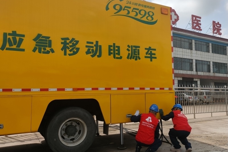 8月21日,國網(wǎng)遼寧電力應(yīng)急搶險(xiǎn)隊(duì)隊(duì)員為建昌縣雷家店鄉(xiāng)康寧醫(yī)院提供應(yīng)急用電保障。