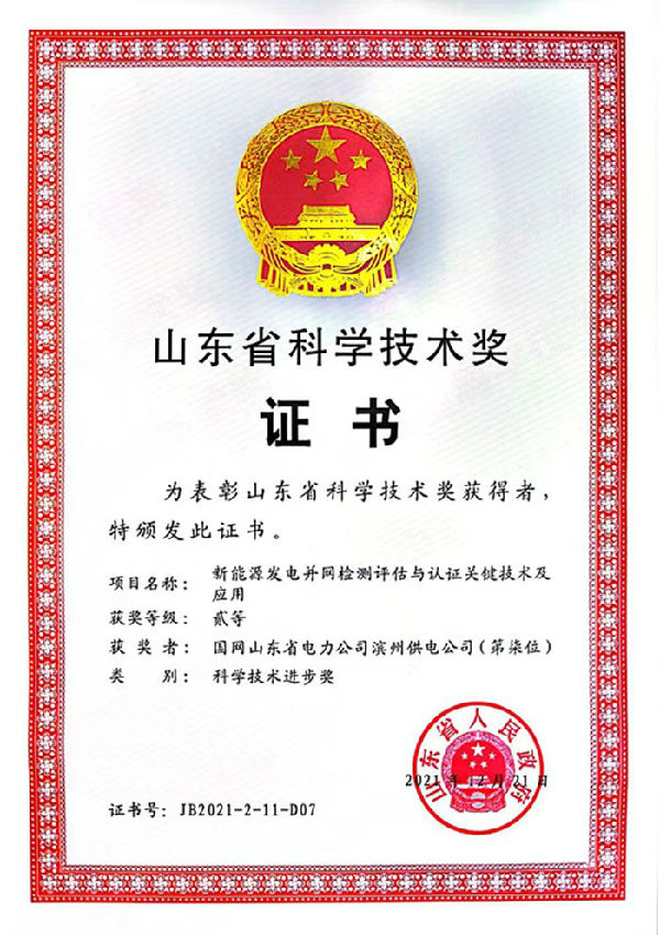 本網(wǎng)訊 7月1日,筆者從《山東省人民政府關(guān)于2021年度山東省科學(xué)技術(shù)獎(jiǎng)勵(lì)的決定》上了解到,濱州公司參與申報(bào)的《新能源發(fā)電并網(wǎng)檢測(cè)評(píng)估與認(rèn)證關(guān)鍵技術(shù)研究及應(yīng)用》項(xiàng)目榮獲2021年度山東省科學(xué)技術(shù)獎(jiǎng)科技進(jìn)步二等獎(jiǎng)。這是濱州公司首次獲得山東省科學(xué)技術(shù)獎(jiǎng)。